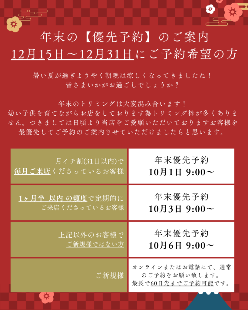 年末年始の営業とご予約
